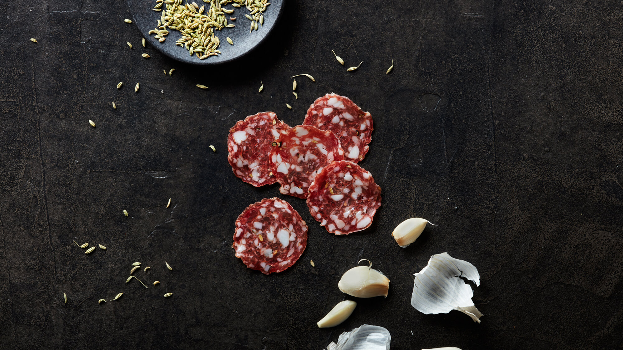 As old Italian folklore goes, a thief walking through a fair in Prato, Tuscany stole a stick of salame from a merchant and hid it in a field of wild fennel. When he returned, it had absorbed the distinct sweet flavor and aroma of the fennel and Finocchiona was born. We make COLUMBUS® Finocchiona Salami with whole cuts of pork never treated with antibiotics, fresh garlic, sherry wine and wild fennel seeds that add a mellow aroma and taste. Slow aged for up to 90 days depending on size. This recipe with a delicate flavor won the Good Food Award in 2013 for Best Charcuterie.