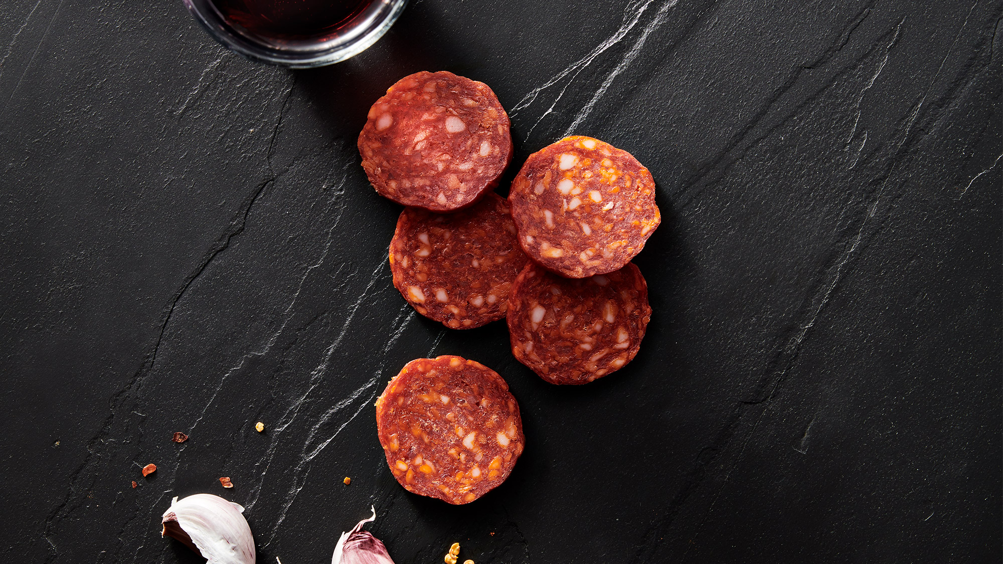 COLUMBUS® Spanish Style Chorizo Salame is seasoned with smoked paprika and fresh garlic for a zesty, spicy bite. Crafted using select cuts of pork, it’s slow aged to round out its robust, hearty flavor. Chorizo complements an array of accompaniments, from peppadew and dark chocolate to canned smoked mussels, manchego or aged cheddar.